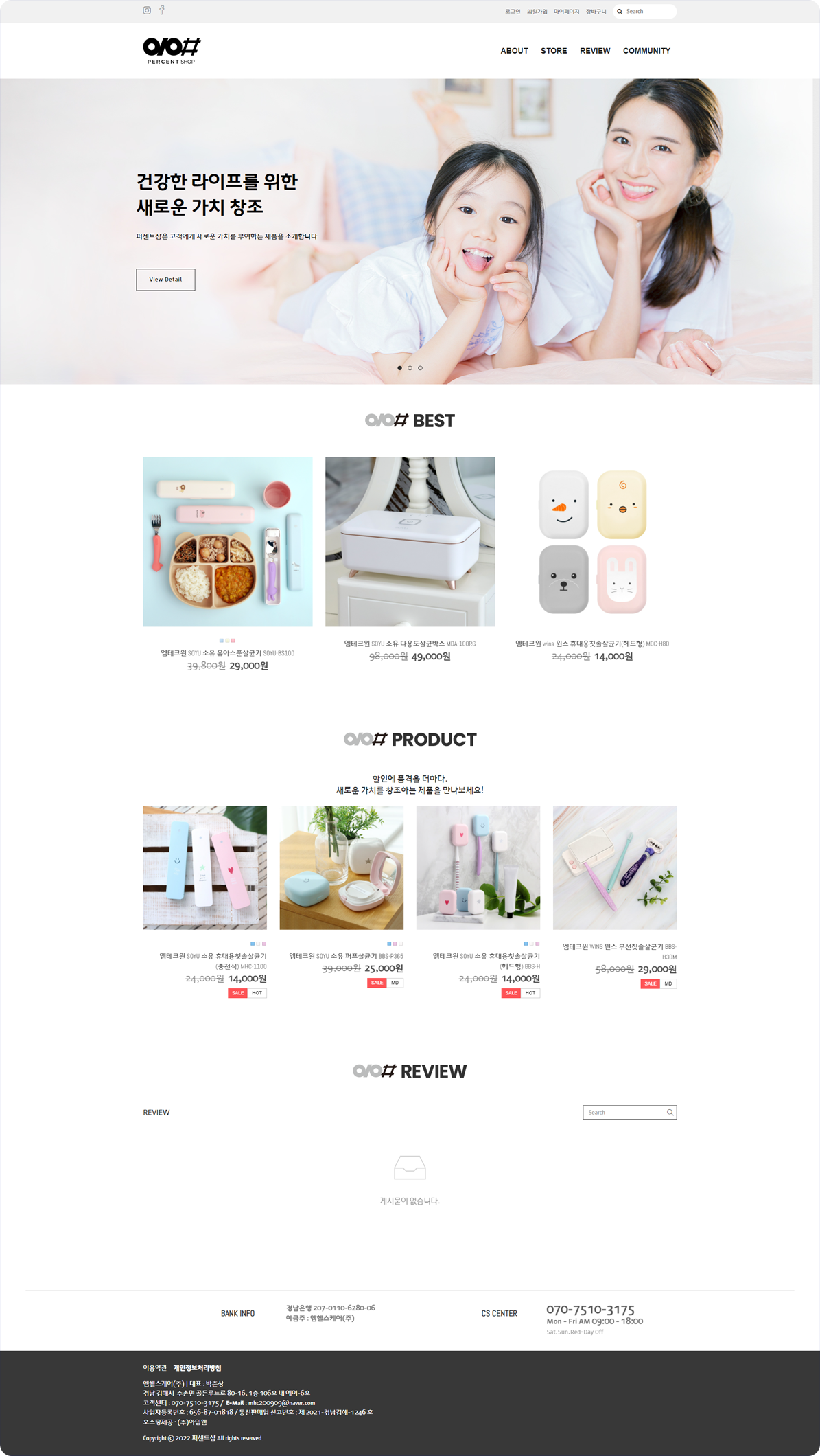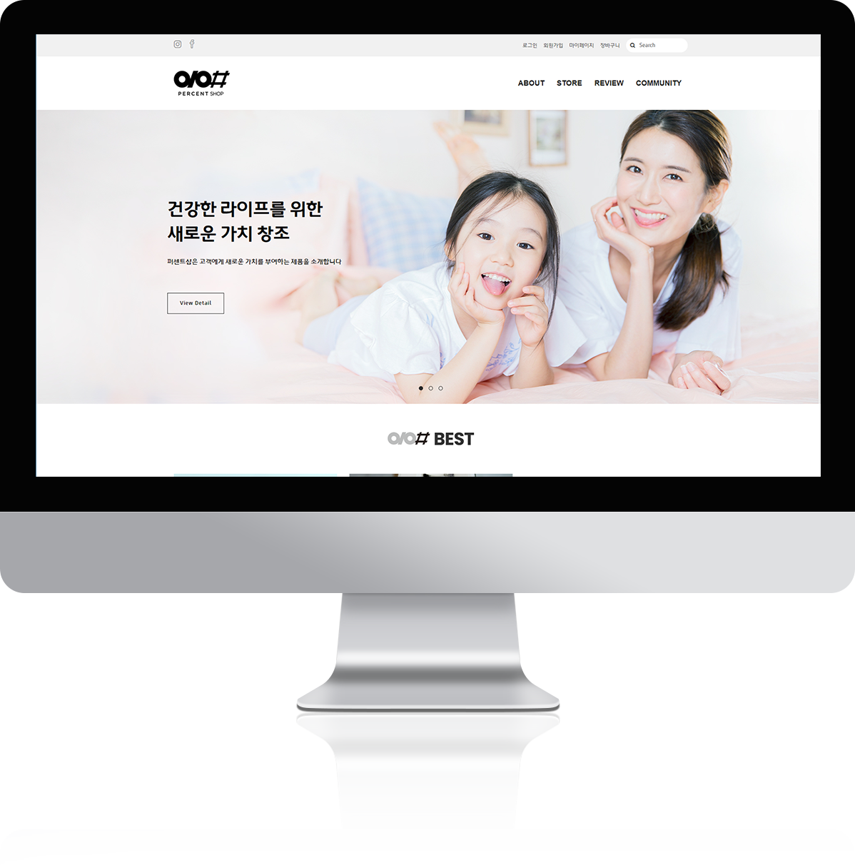 건강한 Life Style을 제공하고 새로운 가치를 창조하는 퍼센트샵의 기업 이미지와 어울리게 디자인했습니다.